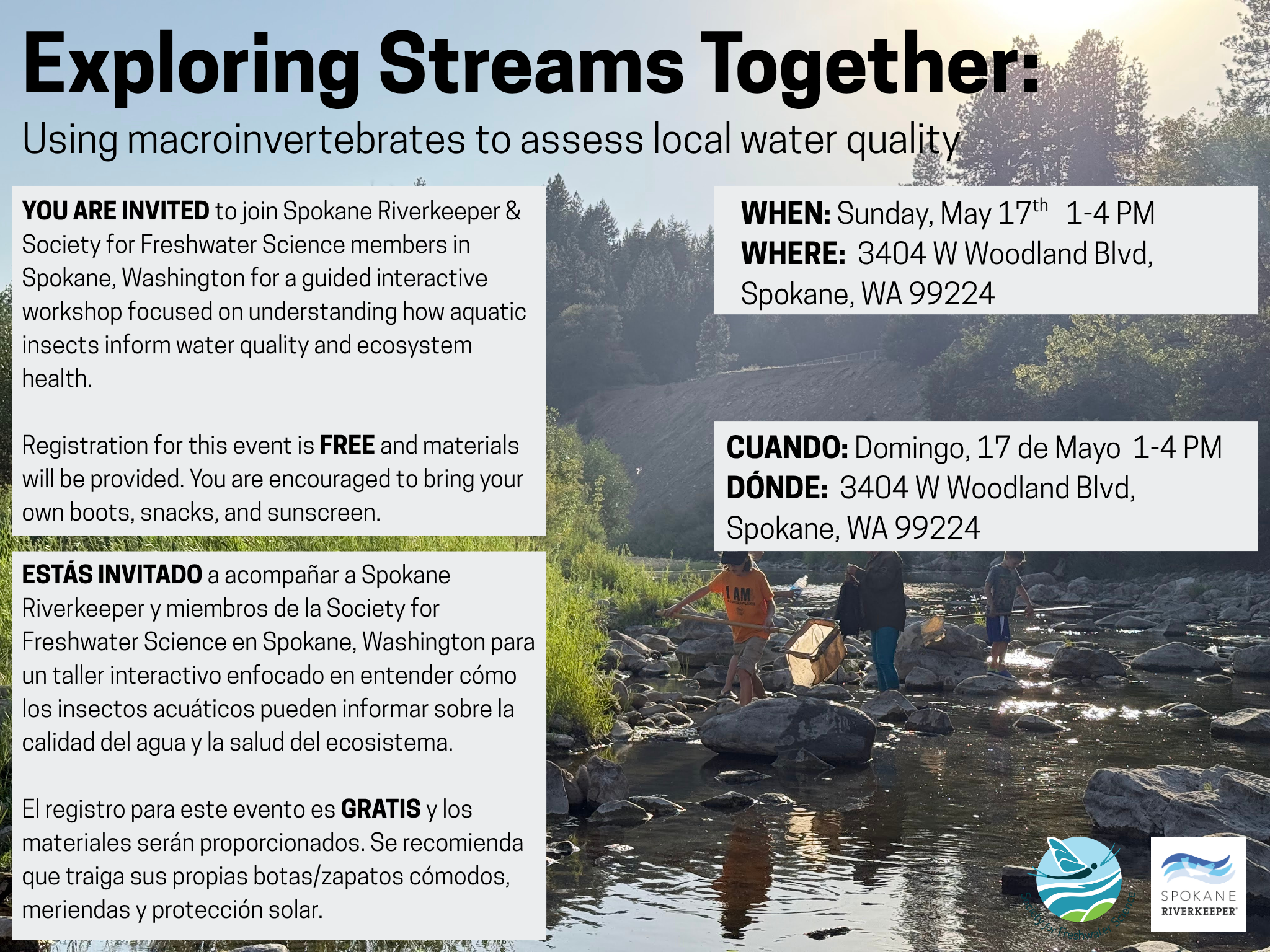 This interactive workshop invites Society for Freshwater Science (SFS) members and local community participants to explore stream ecosystems together. By connecting scientists and residents through shared, hands-on learning, the event strengthens both ecological understanding and community relationships essential to watershed resilience.